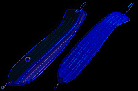 Флешер в форме рыбы прекрасно привлекает лосося на расстоянии. При изготовления тела флешера используется пластик с добавлением пигмента, который светится голубым в ультрафиолете (при дневном солнечном свете). Различные по цветам наклейки предназначены для разнобразных погодных условий. Светонакопительные для утра или пасмурной погоды, также они могут работать в мутной воде. Флуоресцентные цвета могут хорошо работать в солнечные дни. Качественная морская фурнитура позволит ловить не опасаясь за потерю снастей.