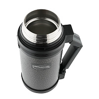 Комбинированное горло термоса для еды и напитков - это универсальный вариант на все случаи жизни. Крышка может использоваться как чашка или блюдце, а в комплекте под крышкой дополнительная пластиковая чашка. Объем термоса дает возможность сохранять еду или напитки на двоих, что станет удачным решением для семейного или группового отдыха на природе. В комплекте к термосу прилагается съемная ручка, что позволяет носить его на плече.