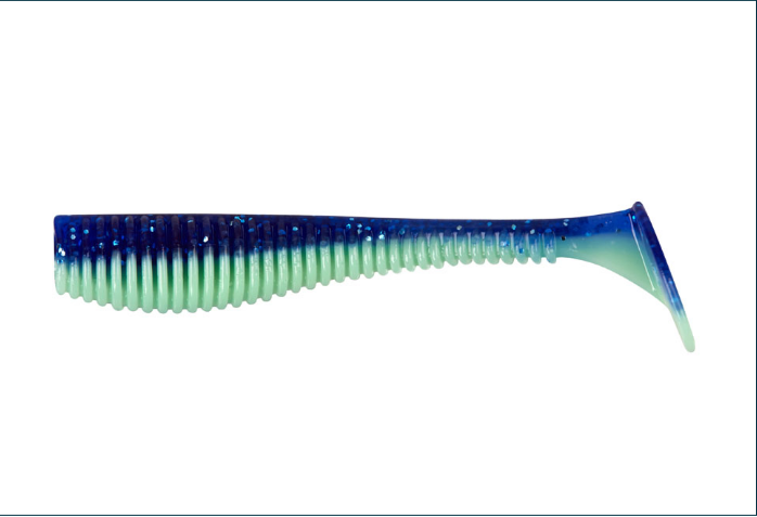И, казалось бы, что такое соотношение должно быть слабым местом силиконовой приманки, но нет, оно является ее преимуществом. Ведь большинство атак хищника приходится на боковую часть силиконовой приманки в районе хвоста и при атаке хвост просто складывается, сохраняя ее целой. Данная конструкция модели позволила использовать более мягкий материал, благодаря которому игра силиконовой приманки становится значительно активнее. Ребристое тело задерживает воздух между ребрами, который выходит под водой, еще более реалистично имитируя малька, а большой размерный ряд и широкий ассортимент цветов, делают эту приманку максимально универсальной. Используя данную модель в своем ассортименте любой, рыболов многократно увеличит шансы на поимку рыбы.