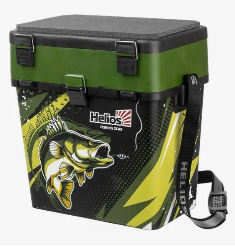 Ящик зимний рыболовный торговой марки Helios с индивидуальным дизайном с изображением судака изготовлен из ударопрочного, морозостойкого и в то же время легкого пластика, обеспечивает надежное хранение и транспортировку рыболовных снастей.